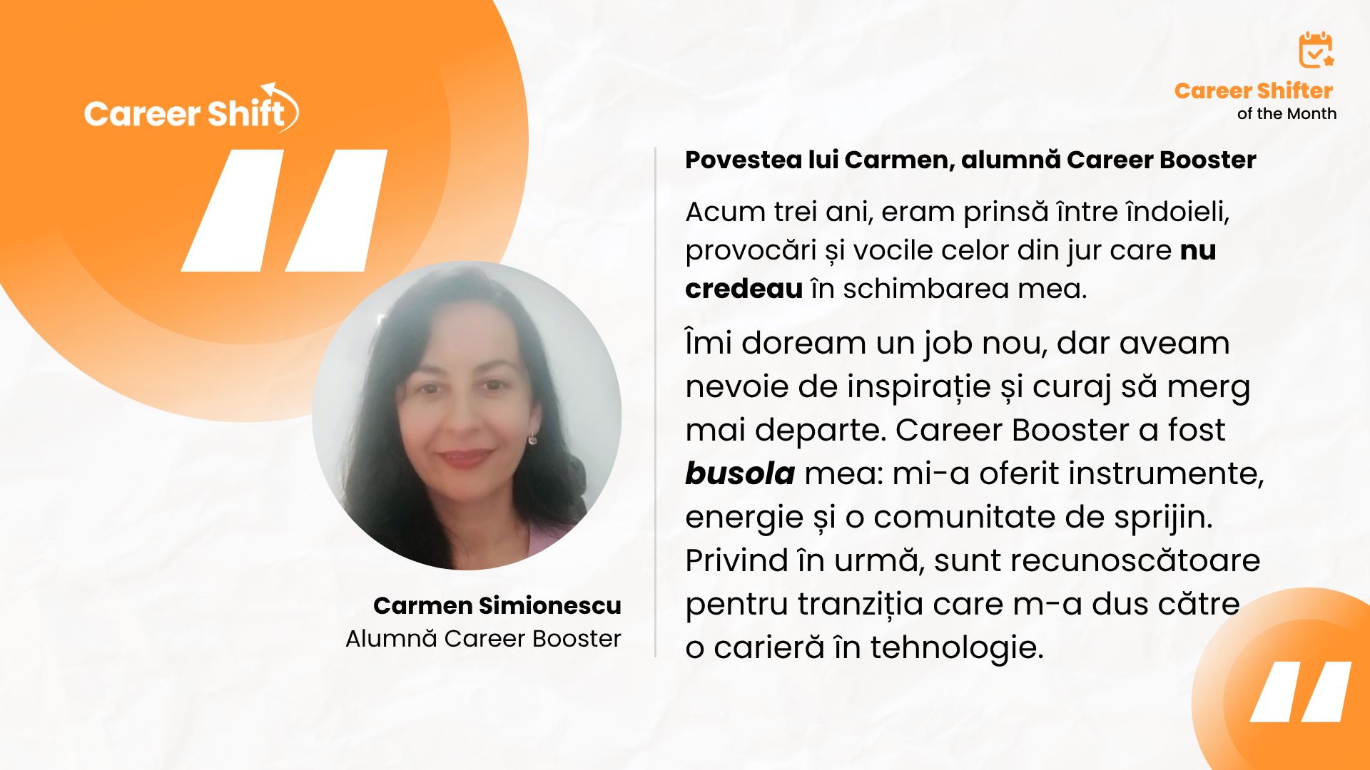 Luna aceasta o avem ca invitată pe Carmen Simionescu - Alumnă Career Booster.