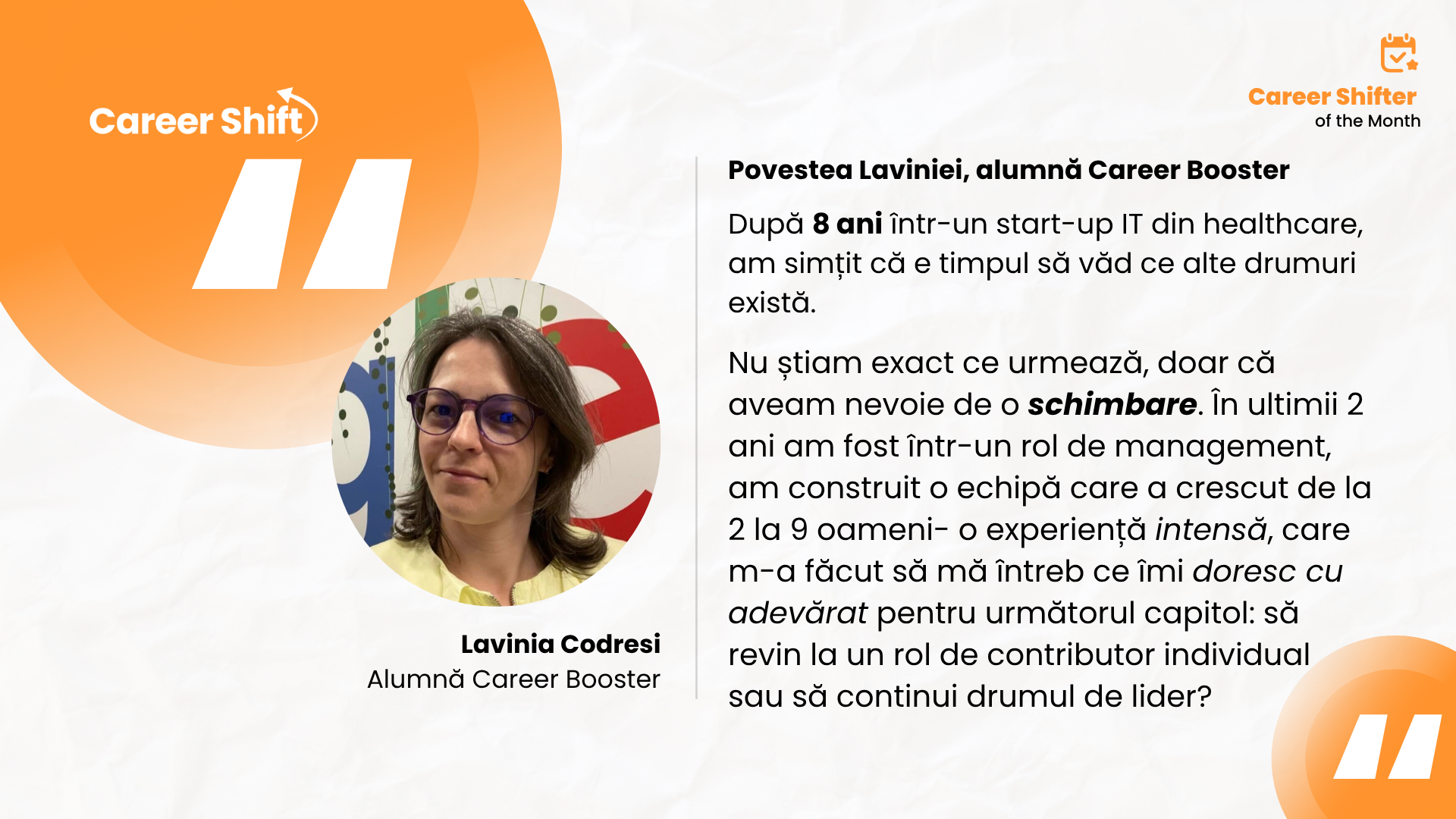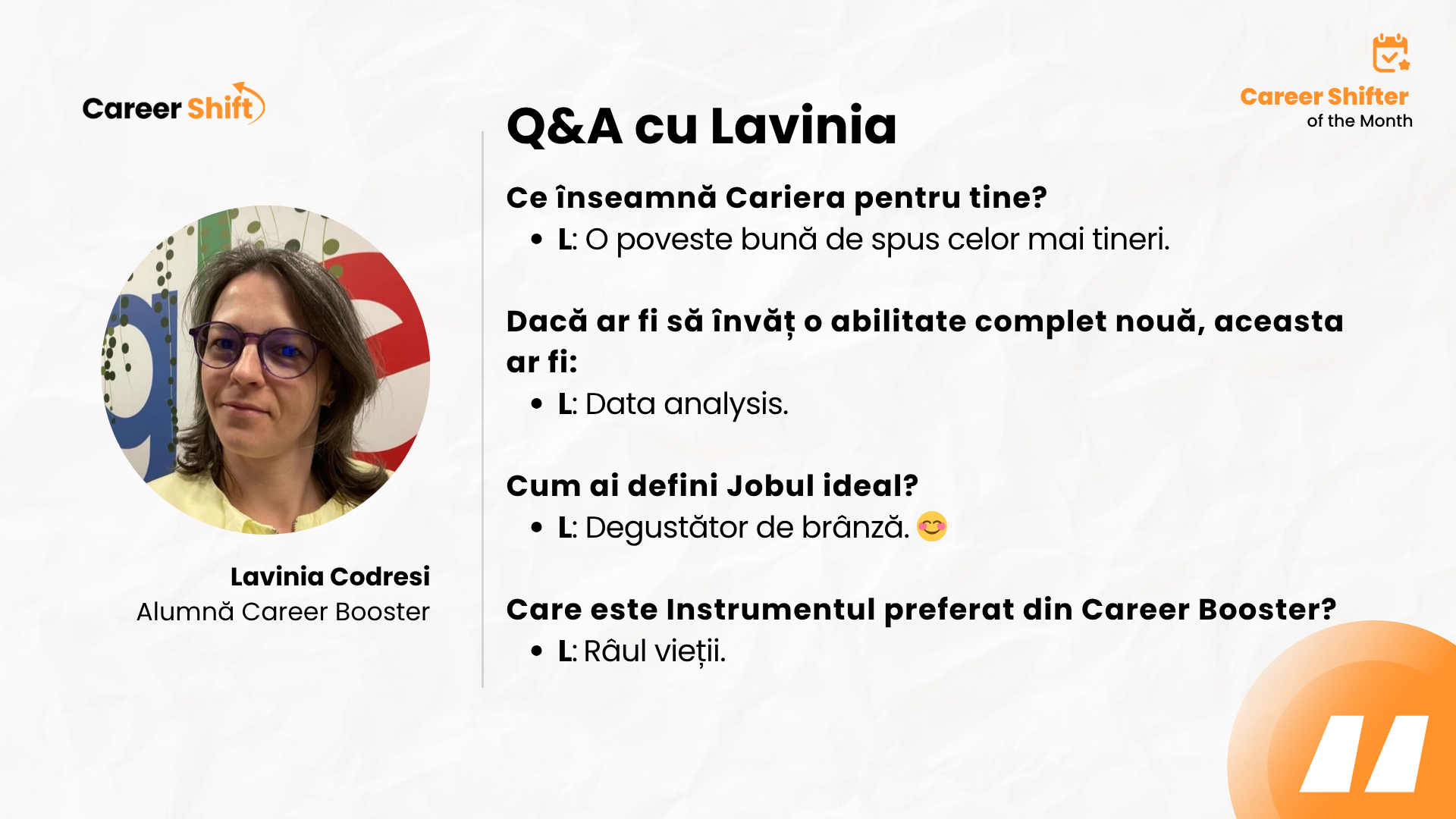 Luna aceasta o avem ca invitată pe Lavinia Codresi - Alumnă Career Booster.