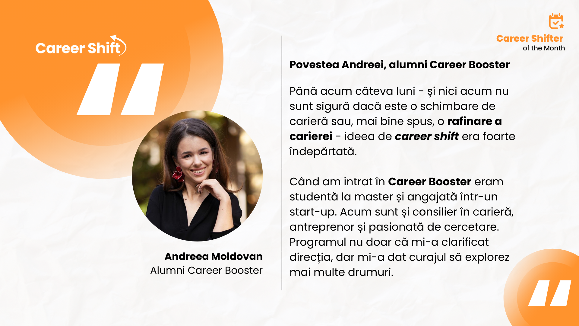 CareerShifter of the Month este o nouă rubrică dedicată celor care au curajul să transforme provocările în noi începuturi.