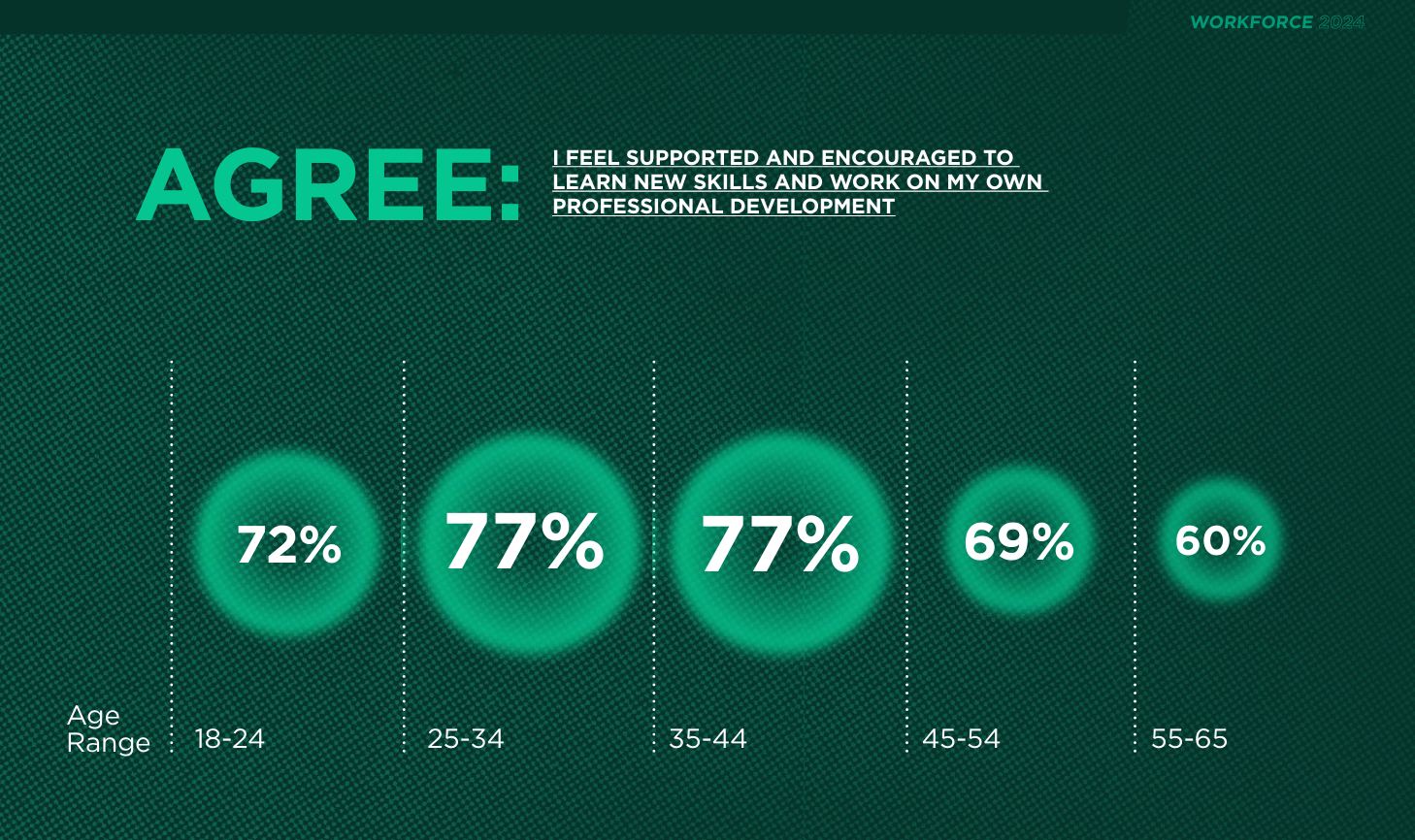 Un studiu realizat în 2024 despre așteptările oamenilor în piața muncii arată că siguranța jobului este abia pe locul 3 la nivel global. În plus, 67% dintre respondenți au declarat că ar accepta un job care nu le oferă mare satisfacție dacă ar avea oportunitatea de a-și dezvolta alte abilități.